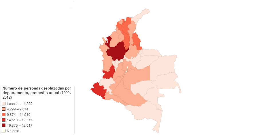 Promedio anual de desplazados forzados entre 1999 y 2012