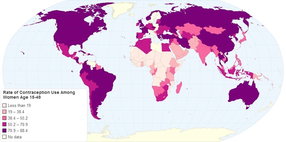 A map showing the rate of contraception use by women age 15-49.