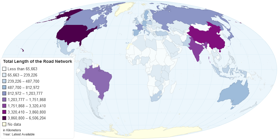 This map shows total length of the road network and includes the length of the paved and unpaved portions.