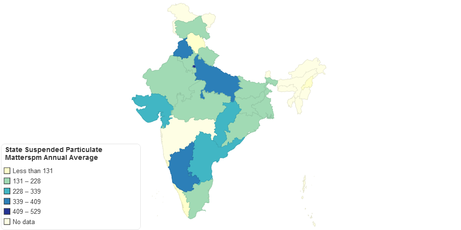 Air quality in Indian states with respect to suspended particulate matter.