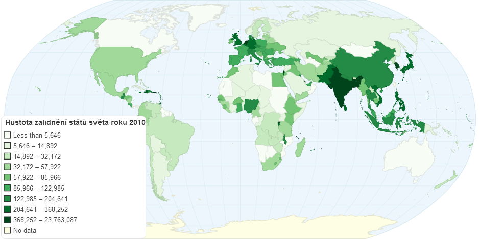 Hustota zalidnÄ›ní ve státech svÄ›ta.