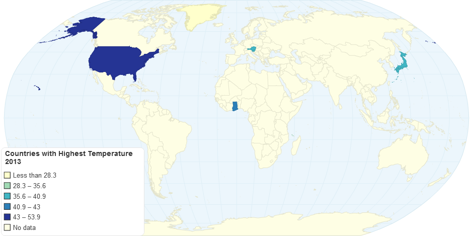 Countries with highest temperature 2013