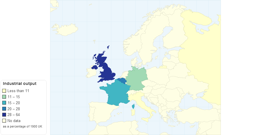 Industrialization Crosses the English Channel, P. Bairoch,“International Industrialization Levels from 1750 to 1980,”Journal of European Economic History 11 (Spring 1982): 294, viewed 20th October, 2014.