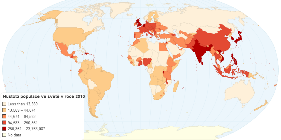 Hustota populace ve světě v roce 2010