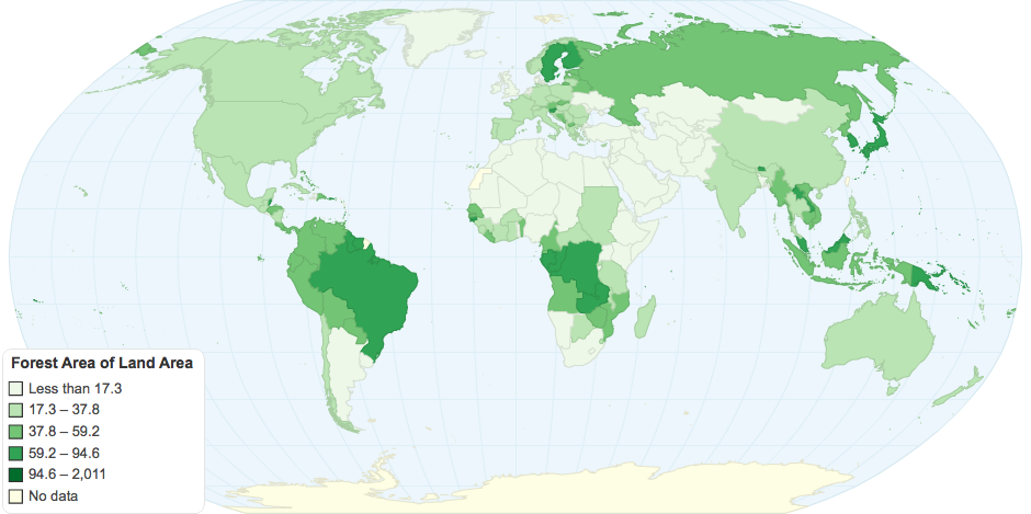 The forest area distribution of the world.