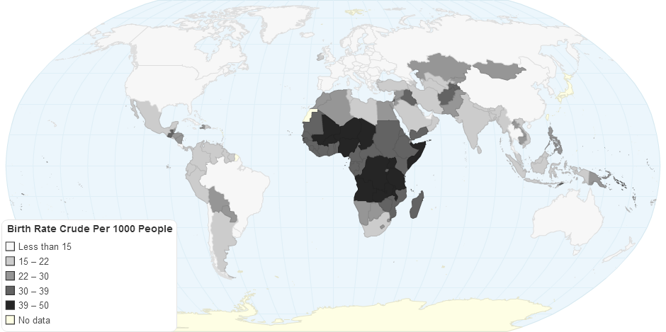 Crude birth rate indicates the number of live births occurring during the year, per 1,000 population estimated at midyear. Subtracting the crude death rate from the crude birth rate provides the rate of natural increase, which is equal to the rate of population change in the absence of migration.