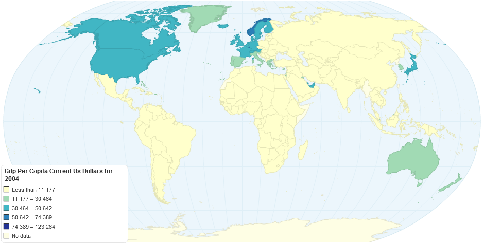 GDP per capita is gross domestic product divided by midyear population. GDP is the sum of gross value added by all resident producers in the economy plus any product taxes and minus any subsidies not included in the value of the products. It is calculated without making deductions for depreciation of fabricated assets or for depletion and degradation of natural resources. Data are in current U.S. dollars.