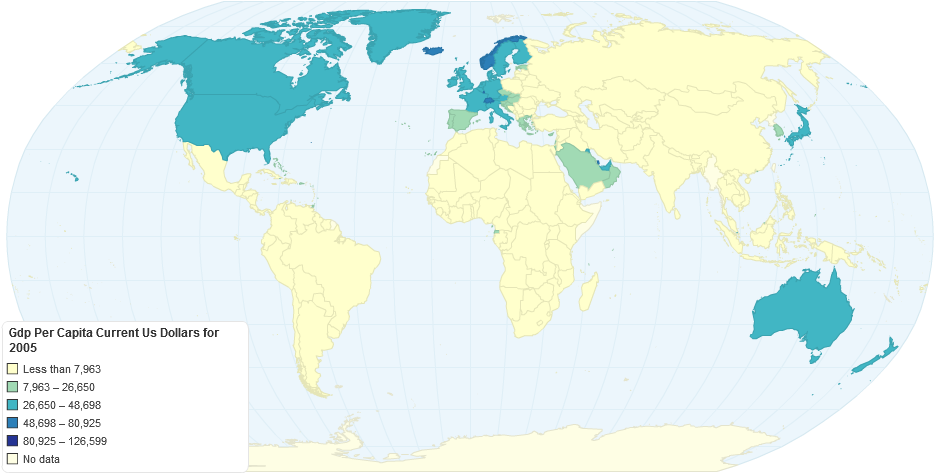 GDP per capita is gross domestic product divided by midyear population. GDP is the sum of gross value added by all resident producers in the economy plus any product taxes and minus any subsidies not included in the value of the products. It is calculated without making deductions for depreciation of fabricated assets or for depletion and degradation of natural resources. Data are in current U.S. dollars.