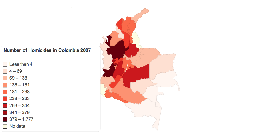 Number of Homicides in Colombia 2007, Number of Homicides in Colombia 2006, Direccion de Justicia y Seguridad: Evaluación a Políticas Públicas, viewed 30th September, 2011., viewed 30th September, 2011.