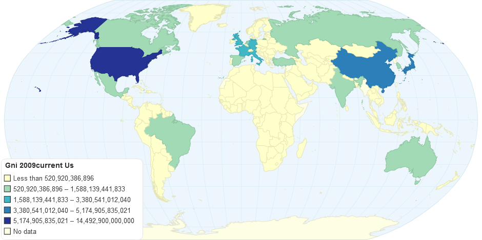 GNI (formerly GNP) is the sum of value added by all resident producers plus any product taxes (less subsidies) not included in the valuation of output plus net receipts of primary income (compensation of employees and property income) from abroad. Data are in current U.S. dollars.