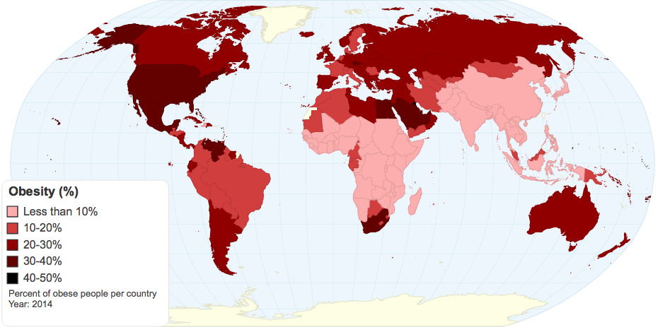 Percentage of obese people per country.