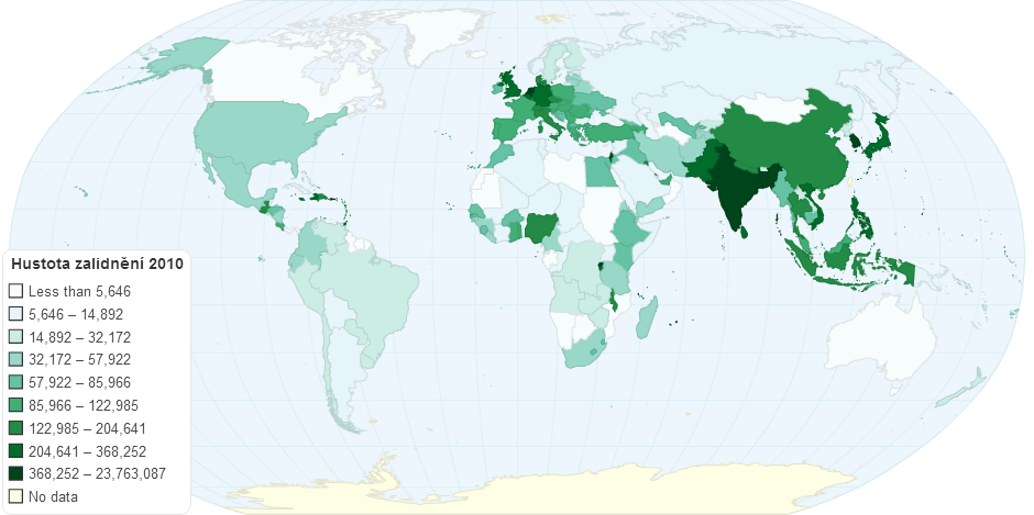 hustota zalidnÄ›ní na svÄ›tÄ› v roce 2010