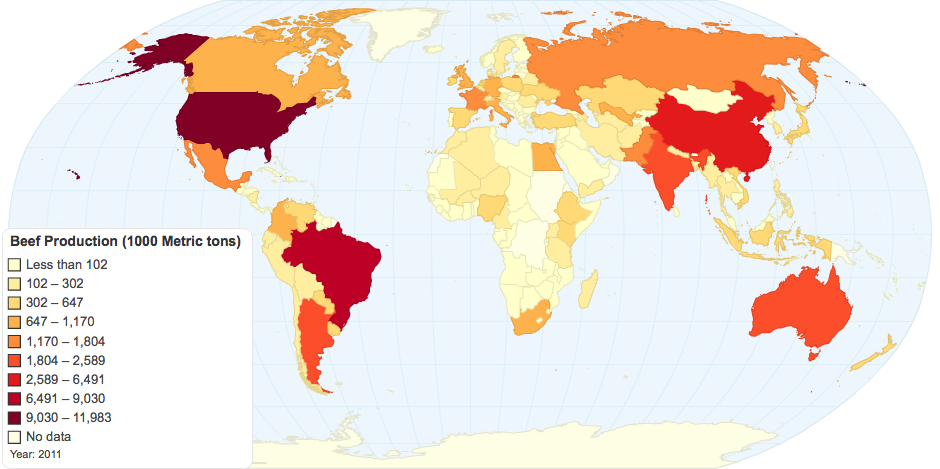 Global Pattern of Beef Production, Food and Agriculture Organization of the United Nations Statistics Division, viewed 8th November, 2014, <http://faostat3.fao.org/home/E>.