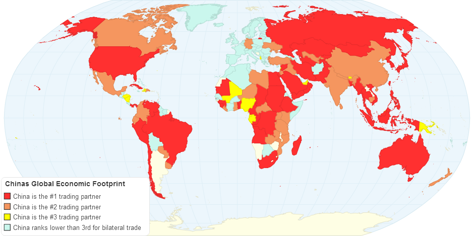 This map shows which countries have China as one of their major trading partners.