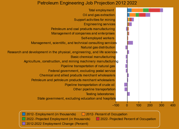 This employment projection is based on the data provided by BLS. It's shows the potential growth of sub-sectors within petroleum engineering field.