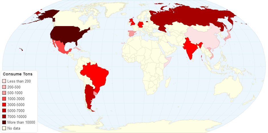 Beef consumption (tons) 1961