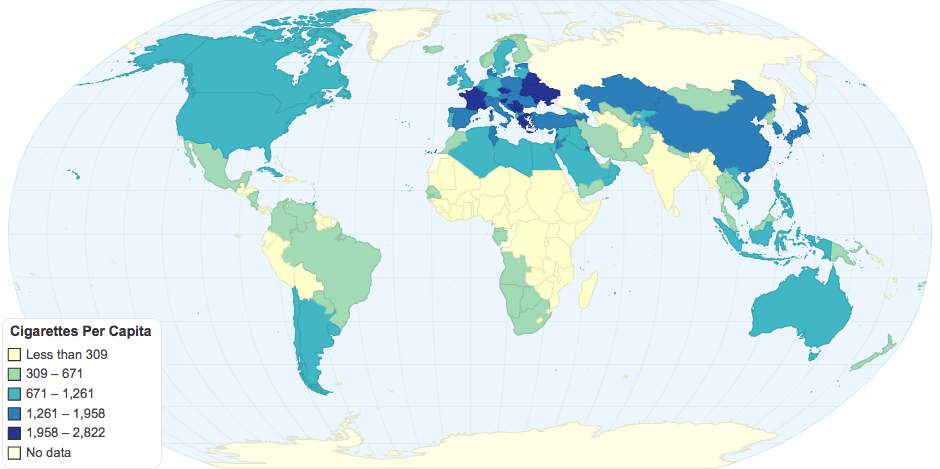 This is a map showing the different number of cigarettes per capita.