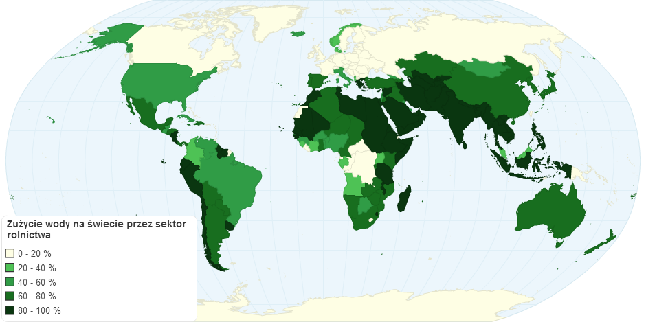 Zużycie wody na świecie przez sektor rolnictwa