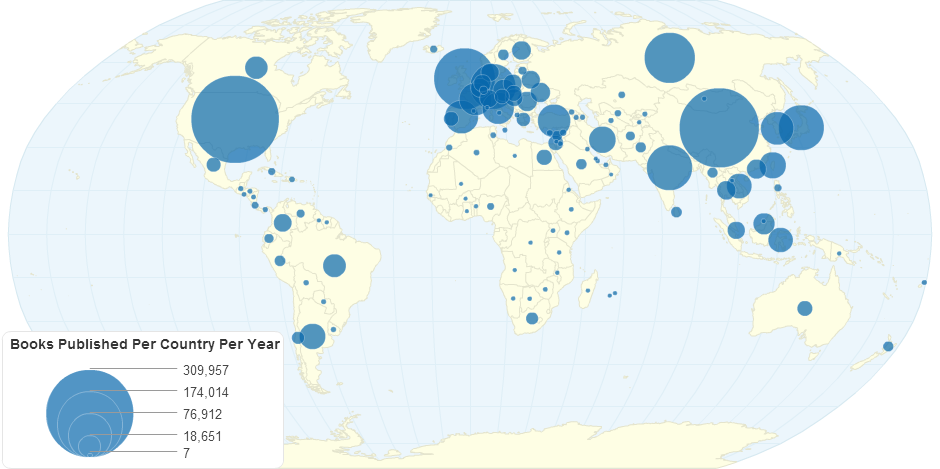 This chart shows Number of Books Published per country per year.The United Nations Educational, Scientific and Cultural Organization (UNESCO) monitors both the number and type of books published per country per year as an important index of standard of living and education, and of a country's self-awareness.