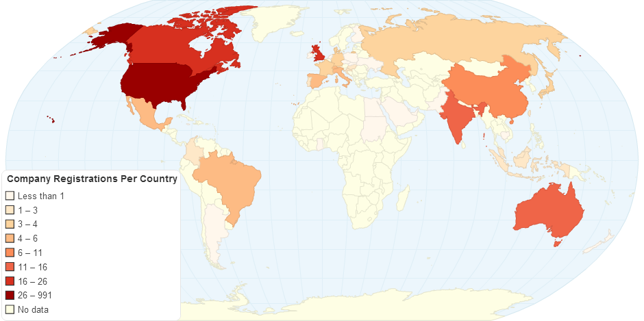 The number of companies that have registered to see data collected by Project Tycho, according to country where the company originates from.