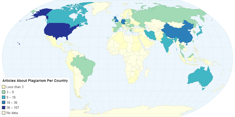 Articles about plagiarism per country