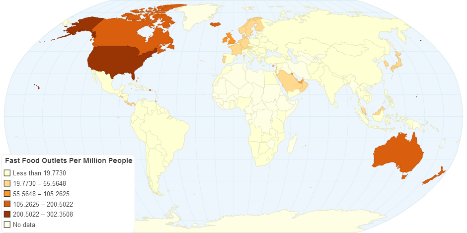 This Chart shows Fast Food Outlets Per Million People for McDonalds, KFC, Starbucks, Pizza Hut and
