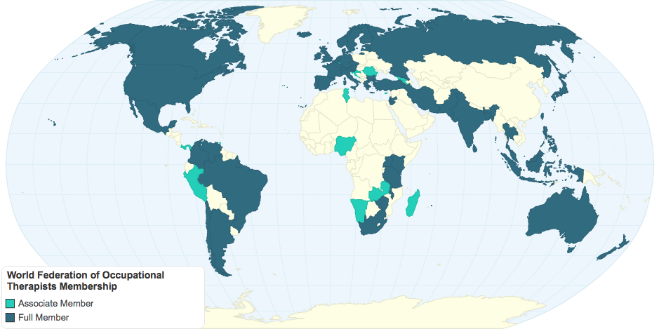 Global representation of country membership to the World Federation of Occupational Therapists