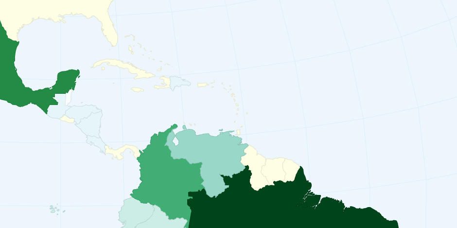 Mapa mostrando toneladas de carne de res producidas en América Latina en 2012 según la FAO.