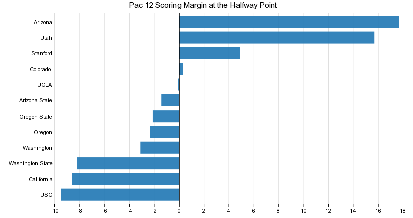 Arizona leads the Pac-12 in scoring margin at the halfway point of the men's basketball season.