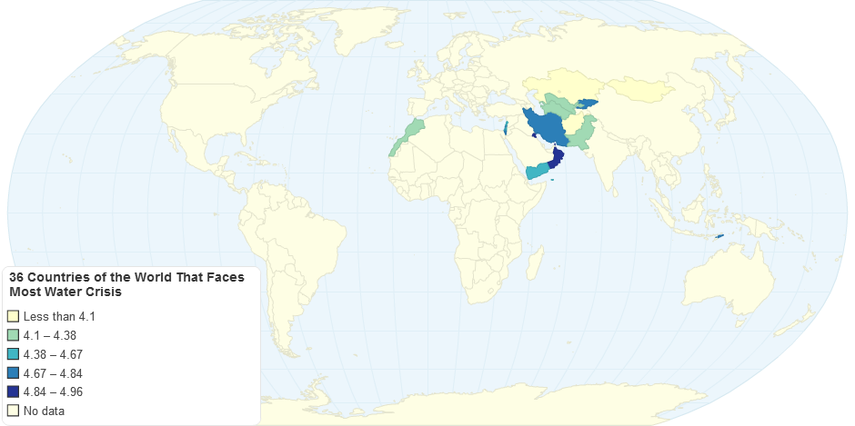 This map shows 37 percent of the total countries in the world experience extremely high baseline water scarcity. This means, according to this research, more than 80 percent of the total water available in the world is used by the agricultural, domestic and industrial users, whereas, the businesses, farms and communities remains vulnerable to the water crisis.