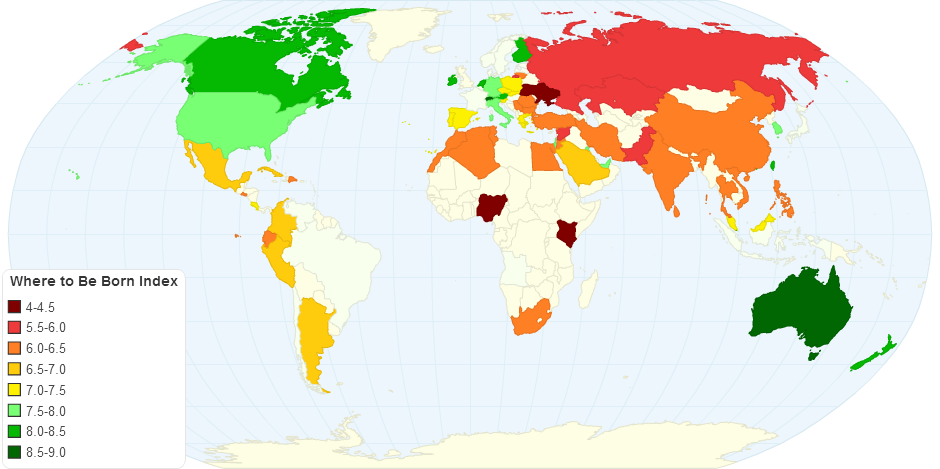 This Map shows Where-to-be-born Index (previously called the quality-of-life index)