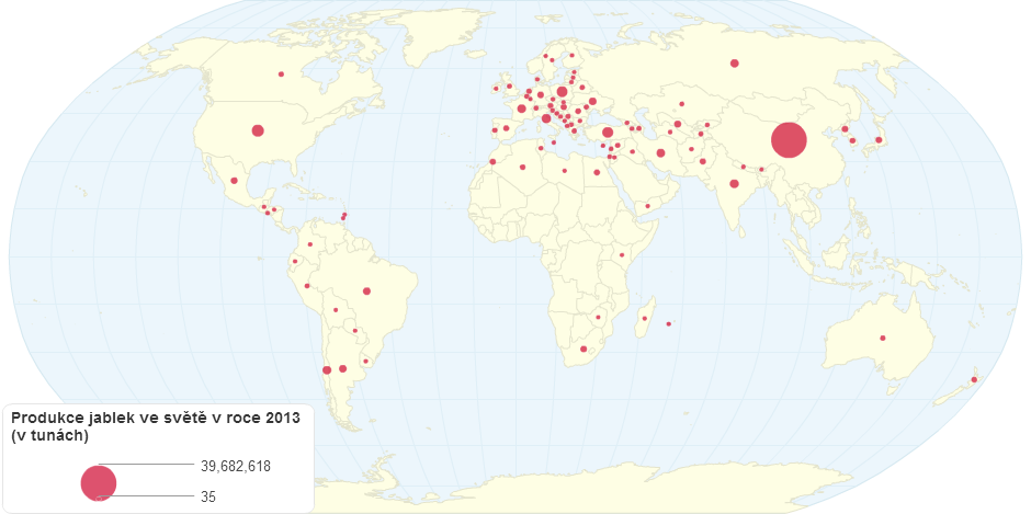 Světová produkce jablek ve světě v roce 2013 v tunách.
