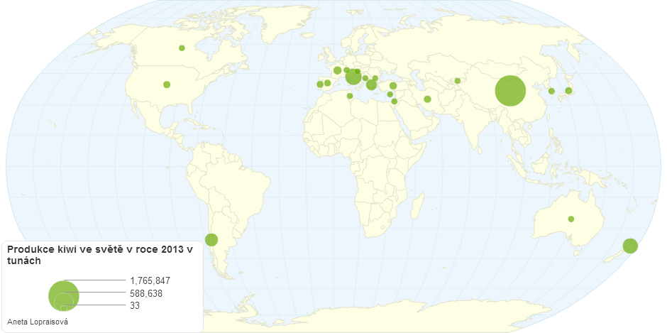 Největší produkce ve světě v roce 2013 byl v Číně, nejmenší v Tunisku.