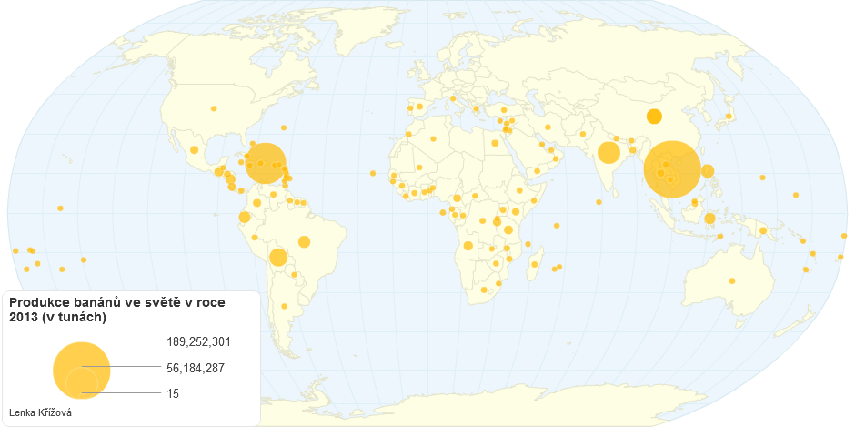 Produkce banánů ve světě v roce 2013 (v tunách)