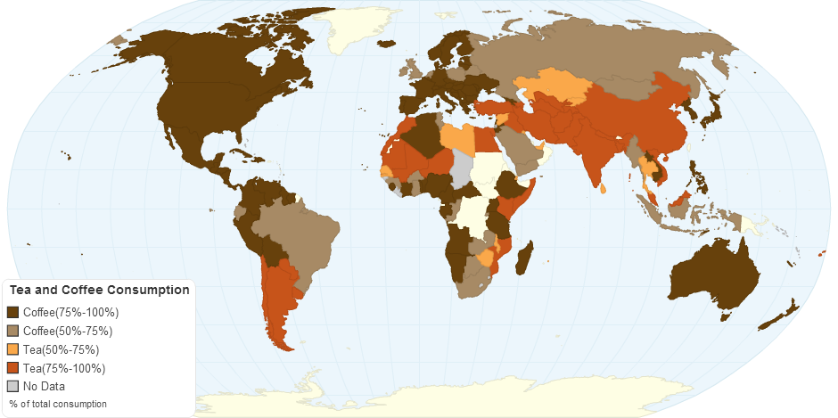 | Country | Coffee(%) | Tea (%) |