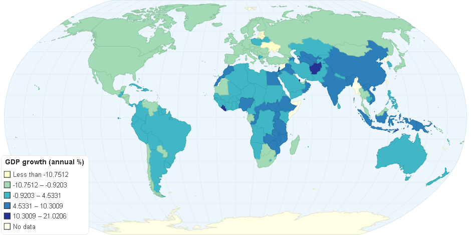 Annual percentage growth rate of GDP at market prices based on constant local currency. Aggregates are based on constant 2005 U.S. dollars. GDP is the sum of gross value added by all resident producers in the economy plus any product taxes and minus any subsidies not included in the value of the products. It is calculated without making deductions for depreciation of fabricated assets or for depletion and degradation of natural resources.