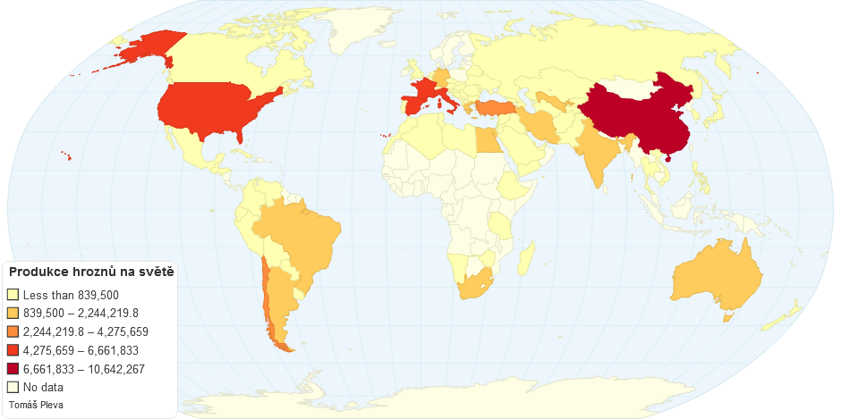 Produkce hroznů na svÄ›tÄ› v roce 2012 získaná z dat na http://faostat3.fao.org