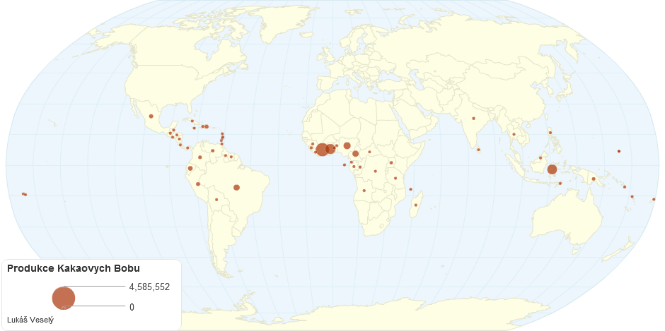 Hlavním producentem kakových bobů je Côte d'Ivoire, které v roce 2013 vyprodukovalo 1 448 992t kakaových bobů. Dalšími významnými producenty ve světě jsou například Ghana, Nigérie a Indonésie.