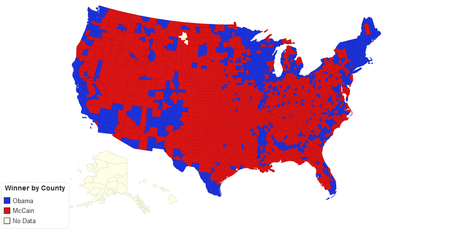 Results of the 2008 presidential election by county.