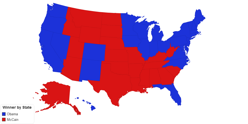 2008 United States presidential election results by state, per a Federal Election Commission report.