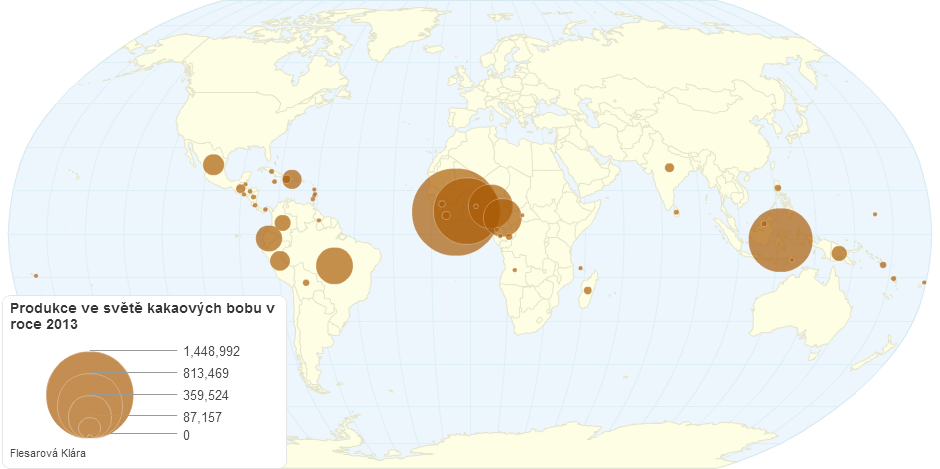 Produkce Kakaových Bobů Ve Světě V Roce 2016