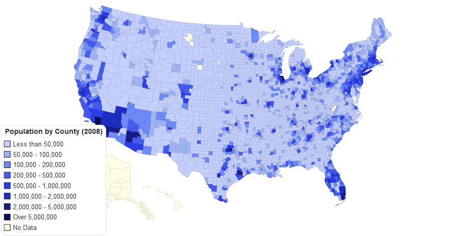 United States population by county in 2008