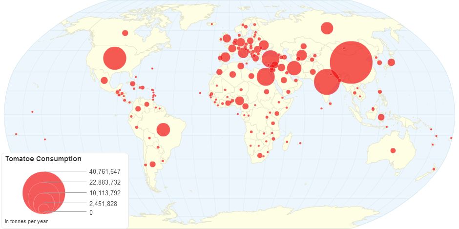 This map shows tomato consumption by country.