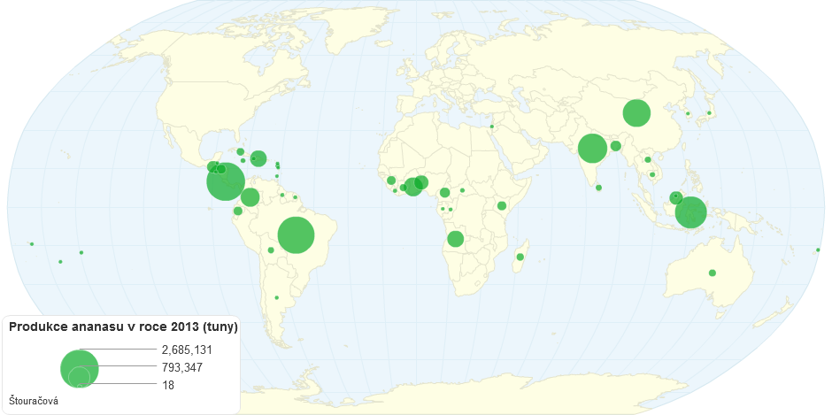 Největší produkce ananasu v roce 2013 bylo v Costa Rice.