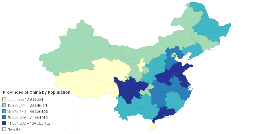 A map of the provinces of China by population.