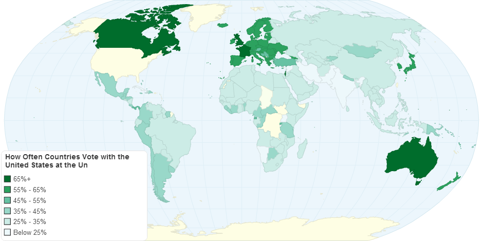 This map shows voting coincidence with the united states.