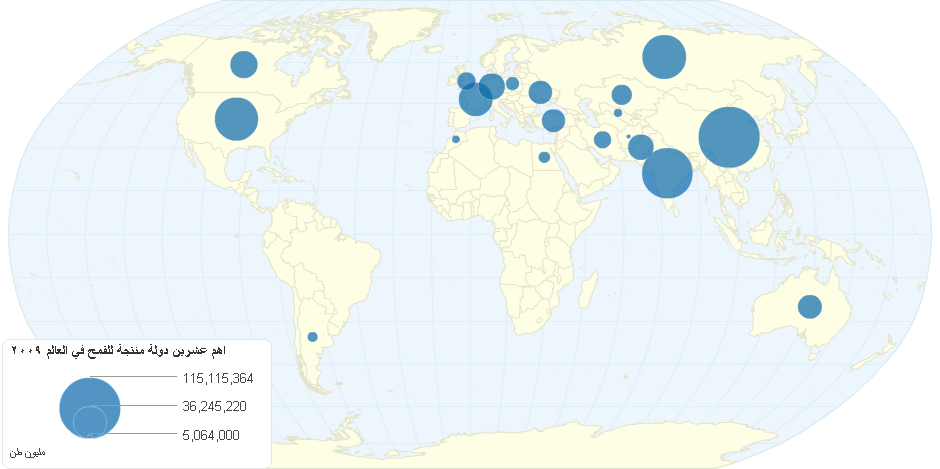 اهم عشرين دولة منتجة للقمح في العالم في عام 2009 (مليون طن)