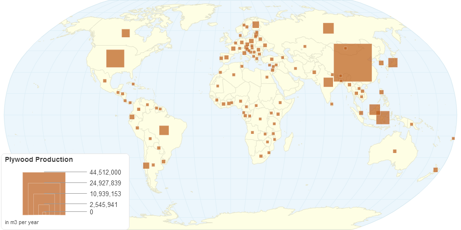 This map shows plywood production by country.