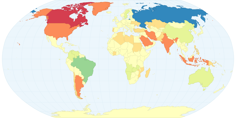 Total changes in surface water storage by country, derived from Global Water Cycle Reanalysis data (http://www.wenfo.org/wald/data-software/)