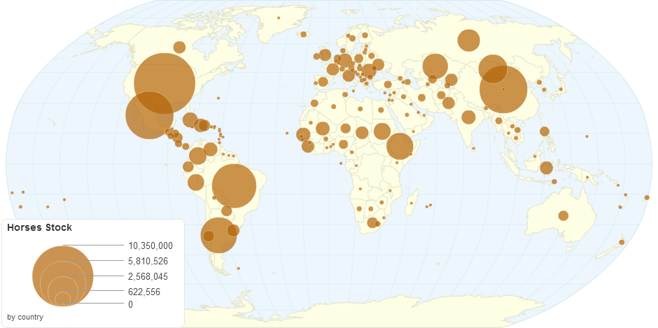 This map shows horses stock details by country.